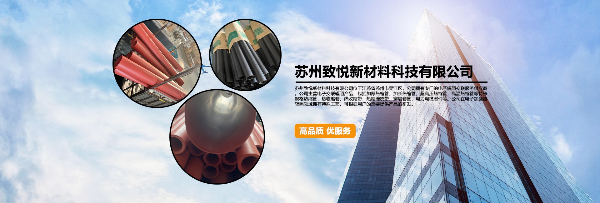 蘇州致悅新材料科技有限公司位于江蘇省蘇州市吳江區(qū),公司擁有專(zhuān)門(mén)的電子輻照交聯(lián)服務(wù)供應(yīng)商。公司主營(yíng)電子交聯(lián)輻照產(chǎn)品,包括加厚熱縮管,加長(zhǎng)熱縮管,超高壓熱縮管,高溫?zé)峥s管等特殊規(guī)格熱縮管,熱收縮套,熱收縮帶,熱縮纏繞帶,穿墻套管,電力電纜附件等。公司在電子加速器輻照領(lǐng)域擁有特殊工藝,可根據(jù)用戶(hù)的需要提供產(chǎn)品的研發(fā)。
